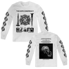 The Hope Conspiracy's "Thoughts and Prayers" design, printed on the front, back and both sleeves of a white Comfort Colors longsleeve shirt.