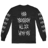 Dying Fetus's "Skeleton Funeral" design, printed on the front, back and both sleeves of a black Gildan Longsleeve.