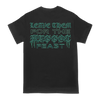 Tee features include 5.3 oz., 100% cotton; classic fit; seamless double needle 7/8” collar; taped neck and shoulders; double needle sleeve and bottom hems; quarter-turned to eliminate center crease; and a tearaway label.