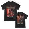 Dying Fetus's "Wrong One Red Version" design, printed on the front and back of a black Gildan brand tee.