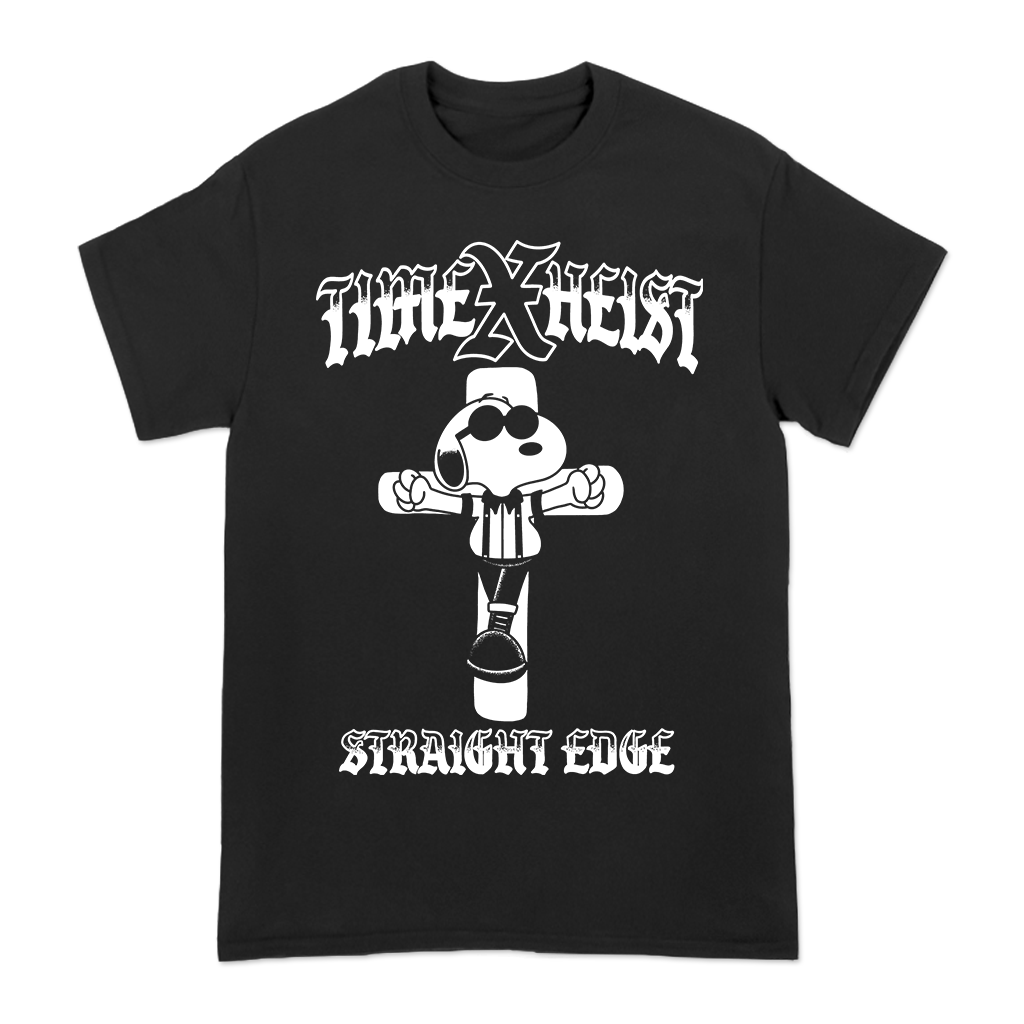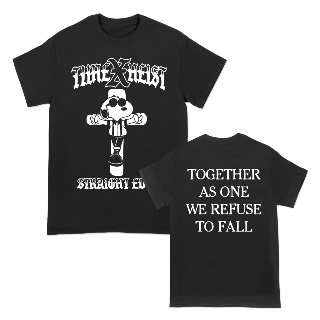 Time Heist's "Together As One" design printed on the front and back of a black American Apparel shirt.