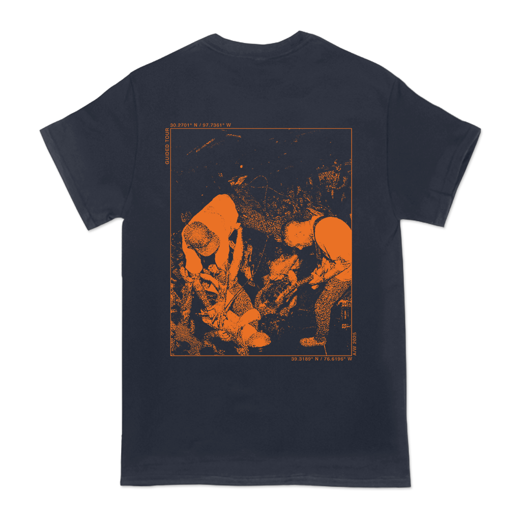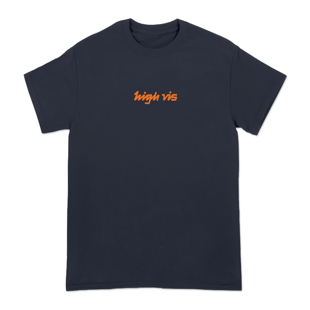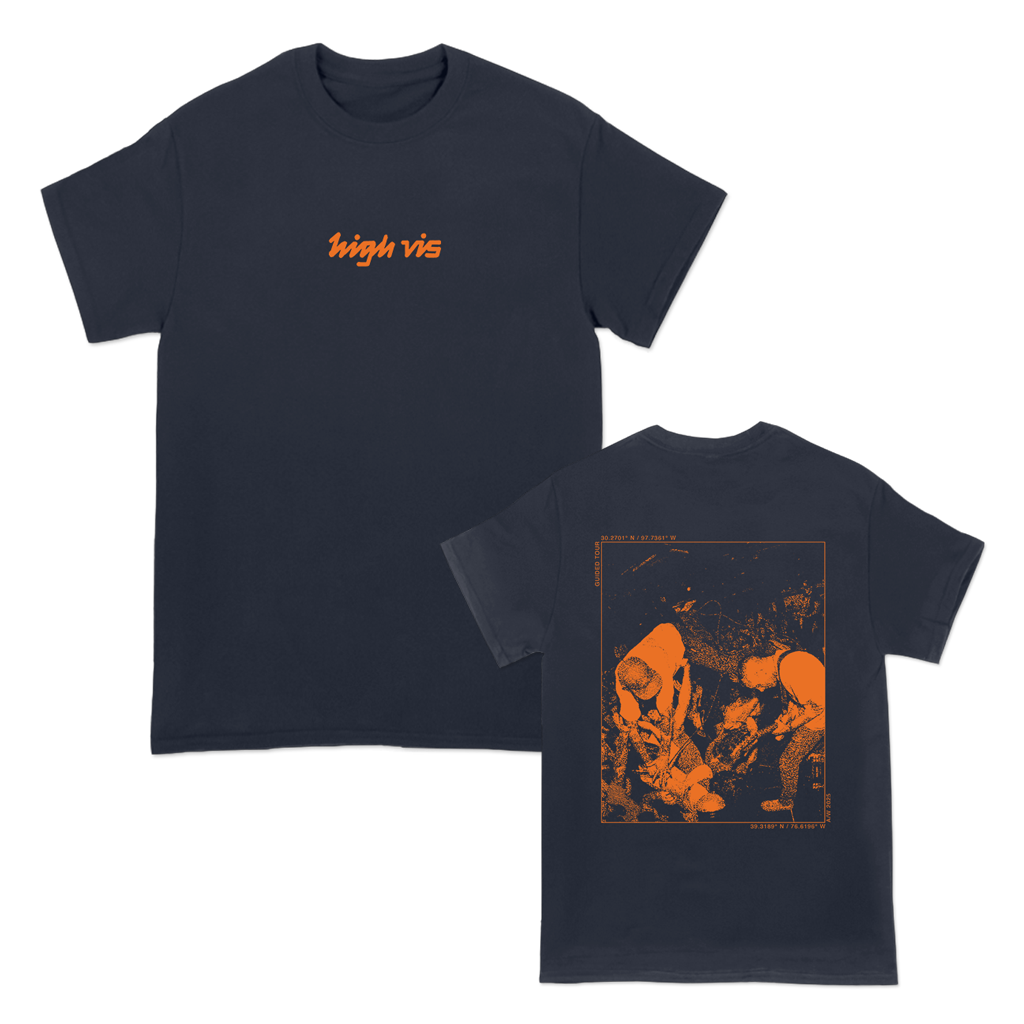 High Vis's "Guided Tour" design, printed on the front and back of a navy Gildan Hammer tee.