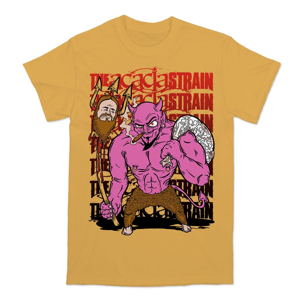 The Acacia Strain's "Christian Satan" design, printed on the front and back of a citrus Comfort Colors tee.