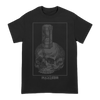 The Acacia Strain's "Tune Low Die Slow" design, printed with reflective ink on the front and back of a black Comfort Colors tee.