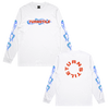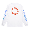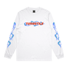 Turnstile's "Flames" design, printed on the front, back and both sleeves of a white long sleeve shirt with a custom woven tag.